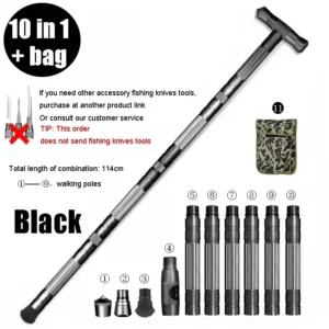 (3)The HANDLE can be formed to STRAIGHT or T-HANDLE. Steady, durable and ideal size for men and women to be used for walking and hiking. it can be assembled into a emergency hammer, a tool or a stick in 1 minute.