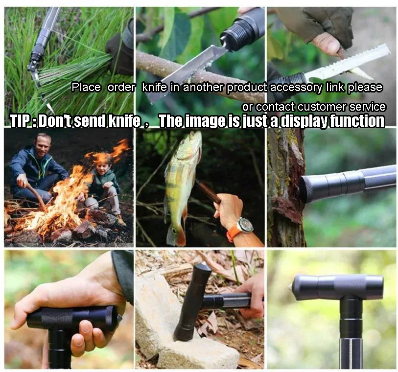 (3)The HANDLE can be formed to STRAIGHT or T-HANDLE. Steady, durable and ideal size for men and women to be used for walking and hiking. it can be assembled into a emergency hammer, a tool or a stick in 1 minute.